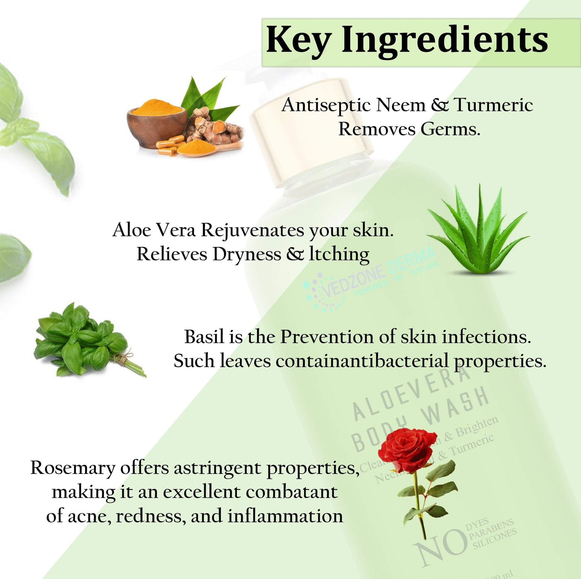 - Organic Body Wash: Sulphate, Parabens and Silicone free Aloe Vera body wash made with Aloe Vera, neem, tulsi, etc. Is a completely natural body wash with a blend of natural herbs and flowers, which gives moisturizing effects to the skin.